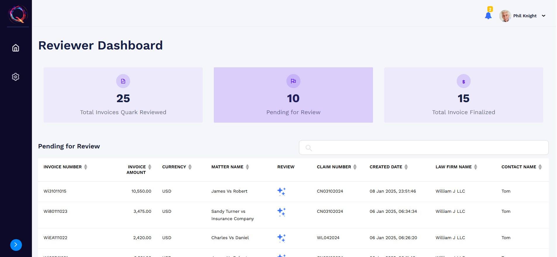 QuarkAI delivers real-time analytics that give you complete visibility into spend, compliance, and review performance. Customizable dashboards...